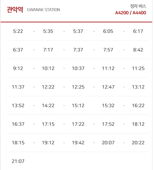 👉 관악역에서 인천공항까지 가는 버스는 2대가 운행합니다.