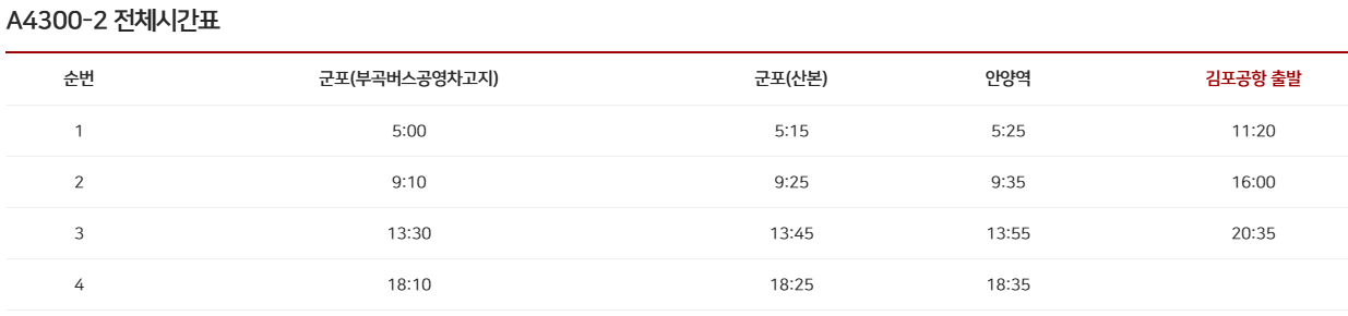 군포에서 출발하는 A4300-2번 공항 리무진 버스의
