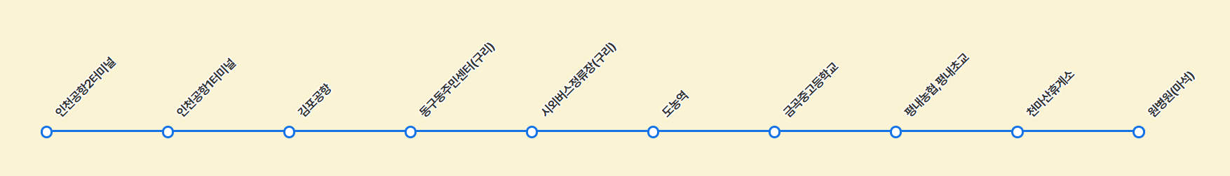 도농→구리공항버스정류장→동구동주민센터→인천공항→인천공항(제2터미널)