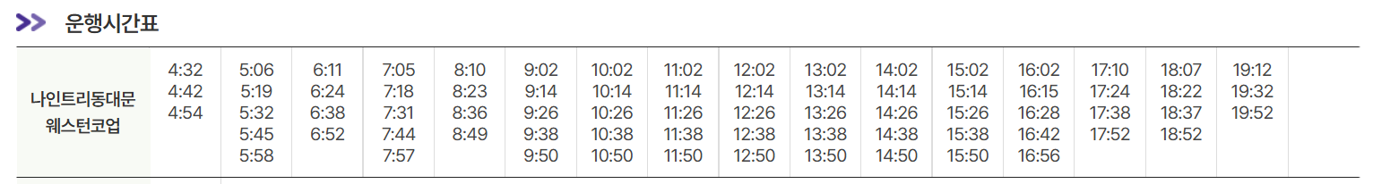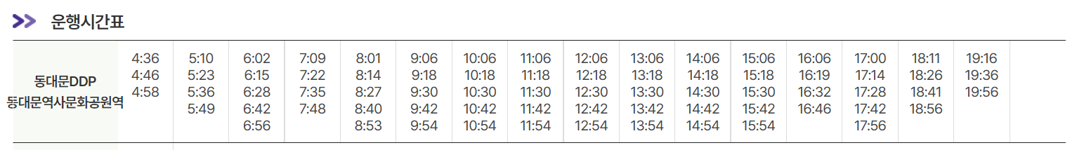동대문 6001번 리무진 타는곳 및 시간표