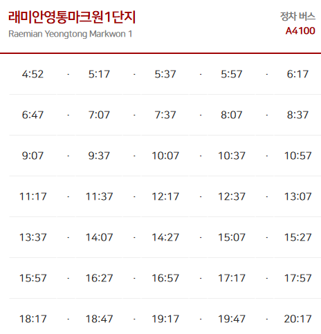버스 시간표는 교통상황이나 환경에 의해 변경이 될수 있으니