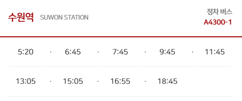 영통에서 출발하는 A4300-1번 공항 리무진 버스의