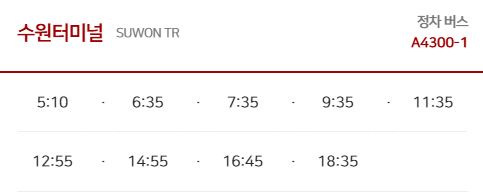영통에서 출발하는 A4300-1번 공항 리무진 버스의