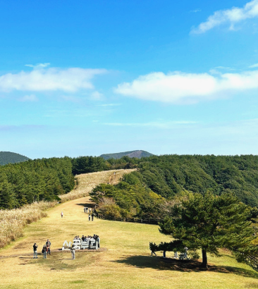 아이들도부담없이 걸을수 있는 완만한 산책로로 분화구를 둘러싼 초원과 억새밭 풍경이 눈을 맑게 해줍니다.